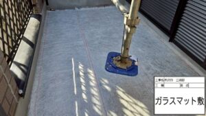 FRP防水とは、ガラス繊維(ガラスマット)に樹脂を染み込ませて硬化させる防水工法です。