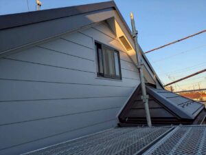 屋根と外壁のカバー工法と付帯部塗装とベランダFRP防水工事をおこないました。