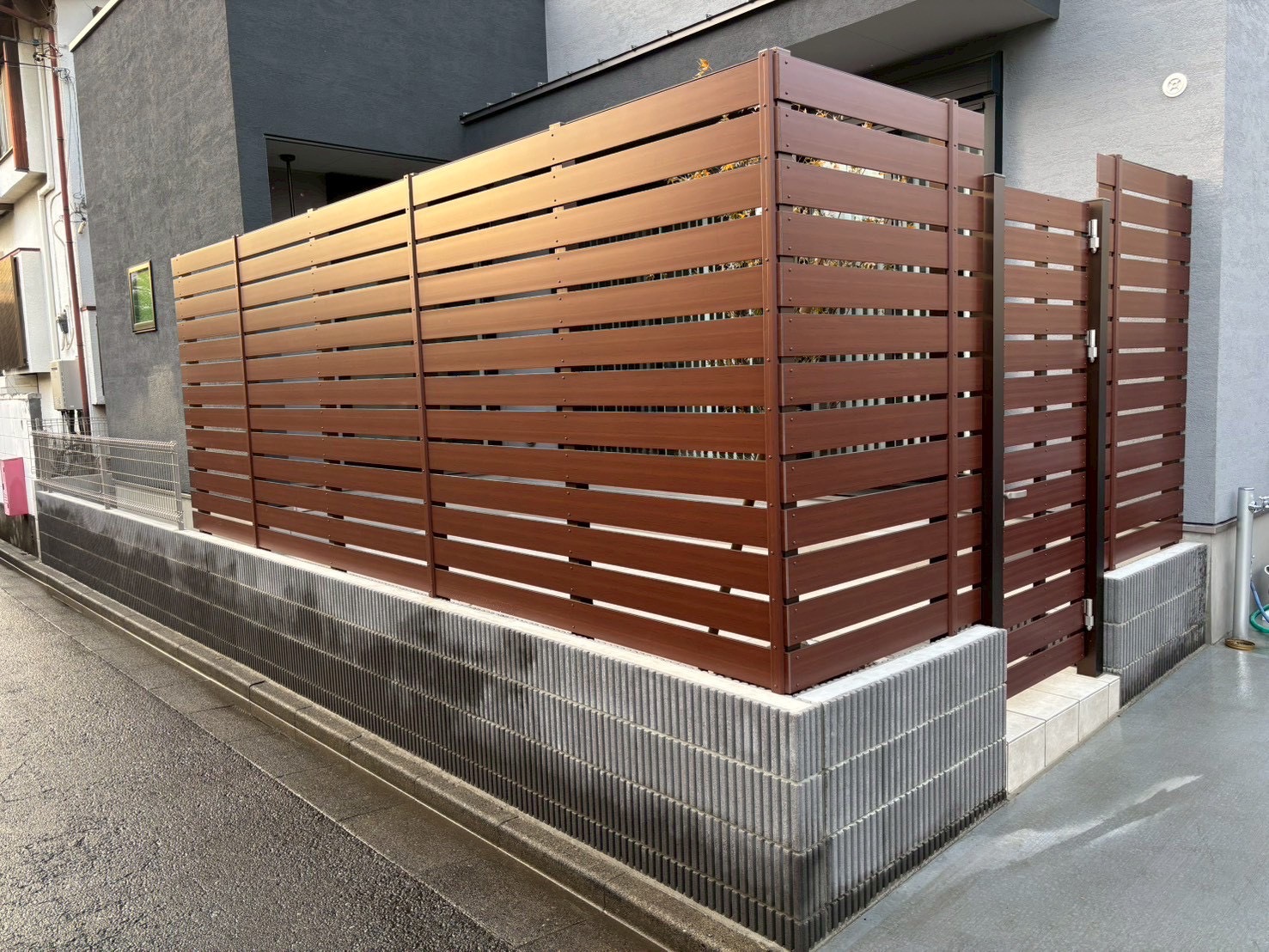 フェンス工事/外構工事 小平市 外構工事 土間コンクリート工事 フェンス工事 After Before 作業・施工内容 木調フェンスと土間コンクリートでつくる、上質で使いやすい外構 今回は、デザイン性と実用性の両方にこだわった外構施工事例をご紹介します。 施工ブログ 施工内容 東京都小平市 外構工事、エクステリア工事